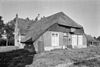 Gepleisterde boerderij, onder rieten wolfdak. Rechts een opkamer. Vensters met luiken en schuiframen met goede roedenverdeling