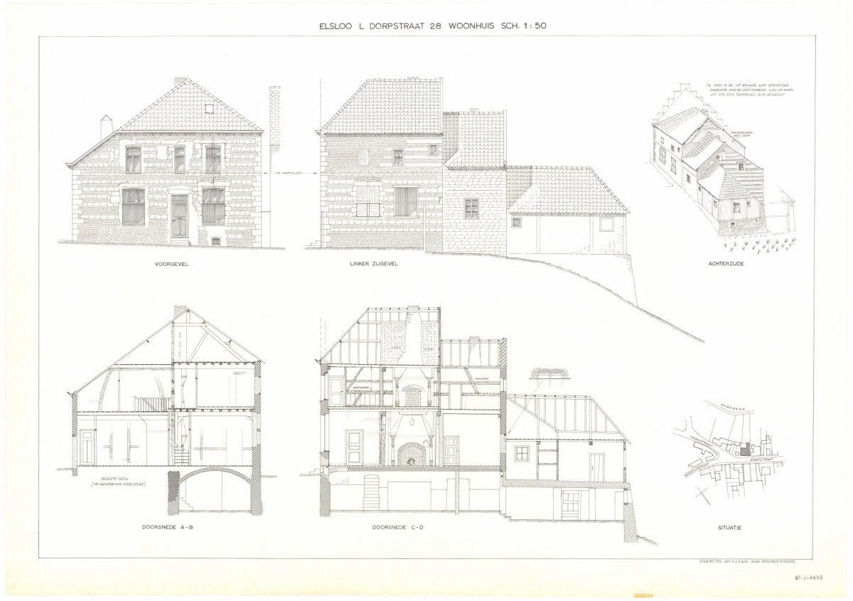 Bakstenen hoeve in haakvorm; Vakwerkschuur Dorpstraat 1, Elsloo