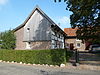 Langgerekt vakwerkpand en haaks hierop losse vakwerkschuur