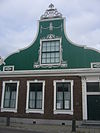 Houten huis, aan de straatzijde voorzien van een puntgevel met zijpilasters
