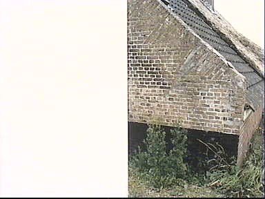 BeschrijvingHet dijkhuis met de onder hetzelfde dak gelegen bedrijfsgedeelten heeft een niet zonder meer afleesbare plattegrond. Vermoedelijk hebben we te maken met een ouder rechthoekig deel, waartegen in de gehele lengte een aanbouw is geplaatst, waarin de keuken, bijkeuken en kelder liggen. Het pand heeft de bedrijfsingang van de smidse met travalje aan de voorkant en de hoofdingang van het eenlaags woonhuis aan de zijkant. In het gepotdekselde achterste bedrijfsgedeelte liggen onder een rieten lessenaardak de bedrijfsingang en de vernieuwde achteringang van het huis. Het is gedekt met een rieten wolfdak met dakraam boven de hoofdingang en een lang hellend dak met lage dakvoet over de aanbouw, die ter plaatse van de smidse met pannen is gedekt. De schoorsteen op de nok van het dak markeert de plaats van de brandmuur tussen woon- en bedrijfsgedeelte, waar op de aansluiting met het lessenaardak een eiken ankerbalkgebint ligt.