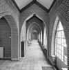 In de rechter zijgevel de kloosterkapel. De plattegrond herinnert aan een kruiskerk met rechtgesloten armen onder zadeldaken met aan weerszijden van het schip zes van voornoemde karakteristieke vensters voorziene tuitgevels met aankappende zadeldaken. Op de viering een zware octogonale toren met koperen spits. In de rechter transeptarm bevond zich oorspronkelijk de 'dokterskapel' (nu devotiekapel). De linker transeptarm , de voormalige 'zusterskapel', is grootschalig ontworpen omdat deze ruimte oorspronkelijk plaats moest bieden aan zeventig zusters (in 1986 bij de verbouwing tot pastoraal centrum door een grote wand van de kapel afgescheiden). De absis is rechtgesloten; in het uitwendige muurwerk een groot kruis, gevormd door teruggelegen metselwerk. In de oksel van schip en rechter transept een portaal met gepolychromeerd keramiekwerk in het tympaan. De eenbeukige ruimte wordt inwendig overwelfd door een steil spitsboogvormig tongewelf met houten cassettenplafond. Grote, tot de nok oprijzende spitse gordelbogen geleden de ruimte. De galerijen aan weerszijden van het schip (ontstaan door doorgangen te creëren in de haakse muren van de aankappende topgevels) geven het idee van een driebeukige opzet. Lichte gele baksteen wordt afgewisseld met donkergeel geglazuurde baksteen in de onderste zones. Van het interieur van de kapel zijn onder meer van belang: vloer met tegels uit Solnhofense steen uit Beieren; deels gebrandschilderde glas-in-loodramen, onder meer in het priesterkoor, in de voormalige dokterskapel (Henri Schoonbrood 1941), bij het ingangsportaal (Ten Bosch 1947) en aan weerszijden van de hoofdtoegang; gepolychromeerd keramisch tympaan boven hoofdingang aan de binnenzijde; muurschilderingen op de zijmuren van het voormalige linker transept (Jan Dijker, Moergestel, vanaf 1944) en een voor de tijd vrij moderne luchtverwarmingsinstallatie in de kelder met ondergronds kanalenstelsel, afkomstig uit de Electro Motoren Fabriek te Dordrecht. Van de inventaris o.a. zijn vermeldenswaard: originele marmeren altaar met accessoires (1940) en kerkmeubilair; rijk gedecoreerde -deels versoberde- koperen plaquettes en altaarkruis (Jan Kriege, Woerden 1940); H. Hartbeeld en Mariabeeld (C. Smout, Amsterdam 1940) en een hongerdoek (Jacques Chéry, 1928). Om de binnentuin van het klooster loopt een eenlaags kloostergang met aanliggende kamers aan de buitenzijde en spitsbogen aan de tuinzijde. De linkervleugel is versoberd door een over de gehele lengte aangebouwde serre. Van het interieur van het klooster zijn o.a. vermeldenswaard: vloertegels als voornoemd; het gebruik van groene baksteen naast lichtgele en donkergeel geglazuurde baksteen; karakteristieke stalen ramen (deels voorzien van gebrandschilderd glas-in-lood) met kleine roedenverdeling als voornoemd maar hier met groene keramische vensterbanktegels; muurschilderingen van J. Schoonbrood (o.a. 1947); originele kapverdieping met houten spantconstructies.
