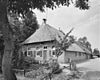Hoeve met rieten wolfdak en metselwerk van afwisselend lagen gele en rode baksteen