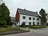 Eenvoudige woning met geprofileerde kozijnen en aanzetlijsten onder zadeldak tegen topgevel