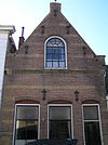 Woonhuis met lage gevel uitgevoerd in baksteen. Maakt deel uit van het synagoge-complex